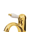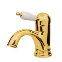 Назначение: для умывальника • Конструкция: однорычажный • Монтаж: горизонтальный • Материал: покрытие - золото • Монтажные отверстия: 1 отверстие • Форма излива: традиционная • Душевая лейка в комплекте: нет • Донный клапан в комплекте: есть