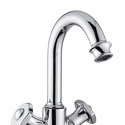 Назначение: для умывальника • Конструкция: двухрычажный • Монтаж: горизонтальный • Материал: латунь, покрытие - хром • Монтажные отверстия: 1 отверстие • Форма излива: традиционная • Душевая лейка в комплекте: нет • Донный клапан в комплекте: есть