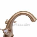 Назначение: для умывальника • Конструкция: двухрычажный • Монтаж: горизонтальный • Материал: латунь, покрытие - бронза • Подводка: гибкая • Монтажные отверстия: 1 отверстие • Форма излива: традиционная • Душевая лейка в комплекте: нет • Аэратор: есть • Донный клапан в комплекте: есть