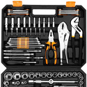 КомплектацияБиты-головки (18 шт): PH: 1, 2 PZ: 1, 2 H: 3, 4, 5, 6 SL: 4, 5.5, 7 T: 8, 10, 15, 20, 20, 25, 30 Т-образный вороток 1/4" - 1 шт. Универсальные шарниры (3 шт): 3/8" 1/4" 1/2" Отвертка-держатель 1/4" - 1 шт. Гибкий удлинитель 1/4" - 1 шт. Держатели для бит (2 шт): 1/2" 1/4" Торцевые головки 1/4" (18 шт): Метрические: 4, 4.5, 5, 5.5, 6, 7, 8, 9, 10, 11, 12, 13, 14 мм Е-тип: Е4, Е5, Е6, Е7, Е8 Торцевые головки 1/2" (16 шт): 10, 12, 13, 14, 15, 16, 17, 18, 19, 20, 21, 22, 24, 27, 30, 32 мм Торцевые головки 3/8" (9 шт): 10, 11, 12, 13, 14, 15, 17, 18, 19 мм Удлинители (2 шт): 3/8"F*1/4"М 1/2"F*3/8"М Переставной ключ 10" - 1 шт. Зажимные клещи 10" - 1 шт. Плоскогубцы 7" - 1 шт. Комбинированные ключи (6 шт): 10, 11, 12, 13, 14, 15 мм Удлиненные головки 1/4" (10 шт): 4, 5, 6, 7, 8, 9, 10, 11, 12, 13 мм Ключи Torx (8 шт): Т: 9, 10, 15, 20, 25, 27, 30, 40 Шестигранные ключи (8 шт): 1.5, 2, 2.5, 3, 4, 5, 6, 8 мм Биты 6.35 мм (68 шт): PZ: 0, 0, 1, 1, 2, 2, 3, 3 PH: 0, 0, 1, 1, 2, 2, 3, 3 H: 2, 2.5, 3, 3, 4, 4, 5, 5, 5.5, 6, 7, 8 TT: 8, 9, 10, 10, 15, 20, 20, 25, 30, AD SL: 3, 3, 4, 4, 4, 5, 5, 5.5, 5.5, 6, 6.5, 7, 7, 8 T: 8, 8, 9, 9, 10, 10, 15, 15, 20, 20, 25, 25, 27, 30, 30, 40 Биты 8 мм (19 шт): PZ: 3, 4 PH: 3, 4 SL: 8, 10, 12 H: 8, 10, 12, 14 T: 40, 45, 50, 55 TT: 40, 45, 50, 55 Биты с торцевой головкой (9 шт): 5, 6, 7, 8, 9, 10, 11, 12, 13 мм Шарнирный вороток 375 мм - 1 шт. Удлинитель с адаптером для головок 1/2" - 1 шт. Кейс - 1 шт.