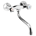 Назначение: кухонный • Конструкция: двухрычажный • Монтаж: вертикальный • Клапан: керамический • Материал: латунь, покрытие - хром • Подводка: жесткая • Монтажные отверстия: 2 отверстия • Форма излива: традиционная • Душевая лейка в комплекте: нет • Аэратор: есть • Эксцентрики в комплекте: есть • Донный клапан в комплекте: есть
