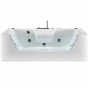 Материал: акрил • Расположение: отдельно стоящая, угловая конструкция • Форма: четверть круга • Количество мест: одноместная • Гидромассаж: есть, 6 форсунок • Аэромассаж: есть, 8 форсунок • Дезинфекция: есть • Подсветка: есть • Комфорт: подголовник • Смеситель в комплекте: есть • Размеры (ДxШxВ): 130x130x62 см