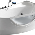 Материал: акрил • Расположение: отдельно стоящая, угловая конструкция • Форма: нестандартная • Количество мест: одноместная • Гидромассаж: есть, 5 форсунок • Аэромассаж: есть • Озонирование: есть • Подсветка: есть • Комфорт: подголовник • Смеситель в комплекте: есть • Размеры (ДxШxВ): 160x95x59 см