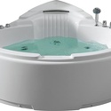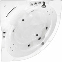Материал: акрил • Расположение: отдельно стоящая, угловая конструкция • Форма: четверть круга • Количество мест: двухместная • Гидромассаж: есть, 7 форсунок • Аэромассаж: есть, 8 форсунок • Озонирование: есть • Подсветка: есть • Комфорт: подголовник • Смеситель в комплекте: есть • Размеры (ДxШxВ): 152x152x60 см