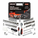 Комплектациятрещотка (2 шт.), отвертка, ключ гаечный, головки, насадки-биты, адаптер (1/4"HEX (M)x1/4"(M)), кардан, удлинители, адаптер для бит, кейс