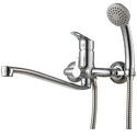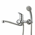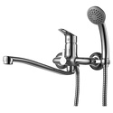 Глубина - Есть, Комплектация - ручной душ, Держатель душевой лейки, душевой шланг, Материал корпуса - Латунь, Тип - Однозахватный, Присоединительный размер - 1\2", Высота излива - 68, Тип подводки - Жесткая, Покрытие - Хром, S-образные эксцентрики - Есть, Поворотный излив - Да, Назначение - Для умывальника, Ширина - 24.5, Количество монтажных отверстий - 2, Аэратор - Есть, Форма излива - Традиционная, Глубина - 37.2, Длина излива - 358, Высота - 15.6, Цвет - Серебристый