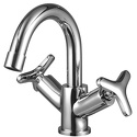 Назначение: для умывальника • Конструкция: двухрычажный • Монтаж: горизонтальный • Клапан: керамический • Материал: покрытие - хром • Подводка: гибкая • Монтажные отверстия: 1 отверстие диаметром 35 мм • Форма излива: традиционная • Душевая лейка в комплекте: нет • Аэратор: есть • Донный клапан в комплекте: есть