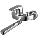 Назначение: ванна+душ • Конструкция: однорычажный • Монтаж: вертикальный • Клапан: керамический • Подводка: жесткая • Монтажные отверстия: 2 отверстия • Форма излива: традиционная • Душевая лейка в комплекте: нет • Аэратор: есть • Эксцентрики в комплекте: есть • Донный клапан в комплекте: есть