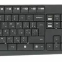 Состав: клавиатура + мышь • Назначение: настольный компьютер • Подключение: беспроводное (радиоканал) • Конструкция: стандартная • Цвет: черный • Беспроводной адаптер: USB • Регулировка наклона: есть • Защита клавиатуры: от воды • Тип мыши: мышь • Технология распознавания движения: оптическая • Колесо прокрутки: есть • Количество кнопок мыши: 3 • Дизайн мыши: симметричный • Клавиатура: 2 x AAA • Мышь: 1 x AA