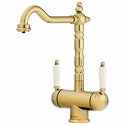 Комплектация - Смеситель, комплект подводки, полный набор креплений для подключения, инструкция, гарантийный талон, салфетка из микрофибры, Покрытие - Золото, Коллекция - Antique times, Материал корпуса - Латунь, Присоединительный размер - 1\2", Тип подводки - Гибкая, Назначение - Для мойки, Тип - Однозахватный, Количество монтажных отверстий - 1, Аэратор - Есть, Высота - 30.6, Форма излива - Традиционная, Высота излива - 236, Поворотный излив - Да, Длина излива - 215, Цвет - Золотистый, Ширина - 15