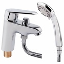 Назначение: для умывальника • Конструкция: однорычажный • Монтаж: горизонтальный • Материал: покрытие - хром • Подводка: гибкая • Монтажные отверстия: 1 отверстие • Форма излива: традиционная • Душевая лейка в комплекте: есть • Держатель для душевой лейки: настенный держатель • Донный клапан в комплекте: есть