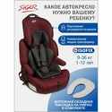 Производитель: Siger Модель: Стар - группа: 1/2/3 (9-36 кг) - крепление: трехточечными ремнями - внутренние ремни: пятиточечные - боковая поддержка: есть - вкладка для новорожденных: есть Описание