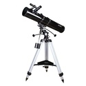 Качественный рефлектор Ньютона для начальных наблюдений дальнего космоса. Диаметр главного зеркала составляет 114 мм. Телескоп комплектуется двумя окулярами: 25 мм и 10 мм. Экваториальная монтировка EQ2 оснащена механизмами тонких движений по обеим осям. Алюминиевая тренога снабжена лотком для аксессуаров. Высоту ножек треноги можно регулировать.
