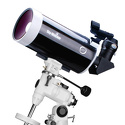 Зеркально-линзовый телескоп с апертурой 127 мм. Данная модель собрана по оптической схеме Максутова-Кассегрена, благодаря чему труба имеет достаточно компактные размеры. В комплект входят окуляры 25 мм и 10 мм. Труба устанавливается на экваториальную монтировку с алюминиевой треногой. Высота треноги регулируется.