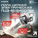 | 119021, Россия, г. Москва, ул. Тимура Фрунзе, д. 11, строение 44, этаж 5 Пила цепная СТАВР ПЦЭ-40/2400ТБК, электрический двигатель, 2400Вт, 40см Доставка — от 49 руб. Из Москвы. | 11 495 руб. 25 289 руб. -55% | В магазин | |