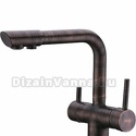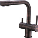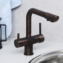 Назначение: кухонный • Конструкция: однорычажный • Монтаж: горизонтальный • Клапан: керамический • Материал: латунь, покрытие - бронза • Подводка: гибкая • Монтажные отверстия: 1 отверстие • Форма излива: традиционная • Душевая лейка в комплекте: нет • Аэратор: есть
